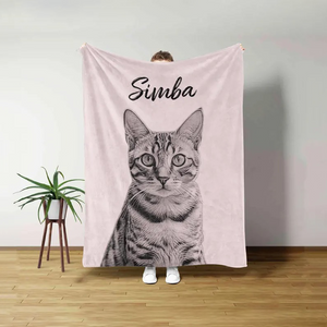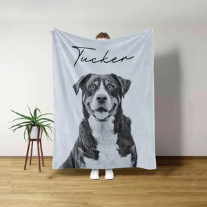 Personalized Pet Pencil Art Portrait Blanket Custom Pet Memorial Fleece Blanket