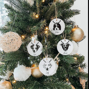 A Christmas MUST HAVE! A custom illustration of your pet printed onto a ceramic ornament! 🌲🌲🌲