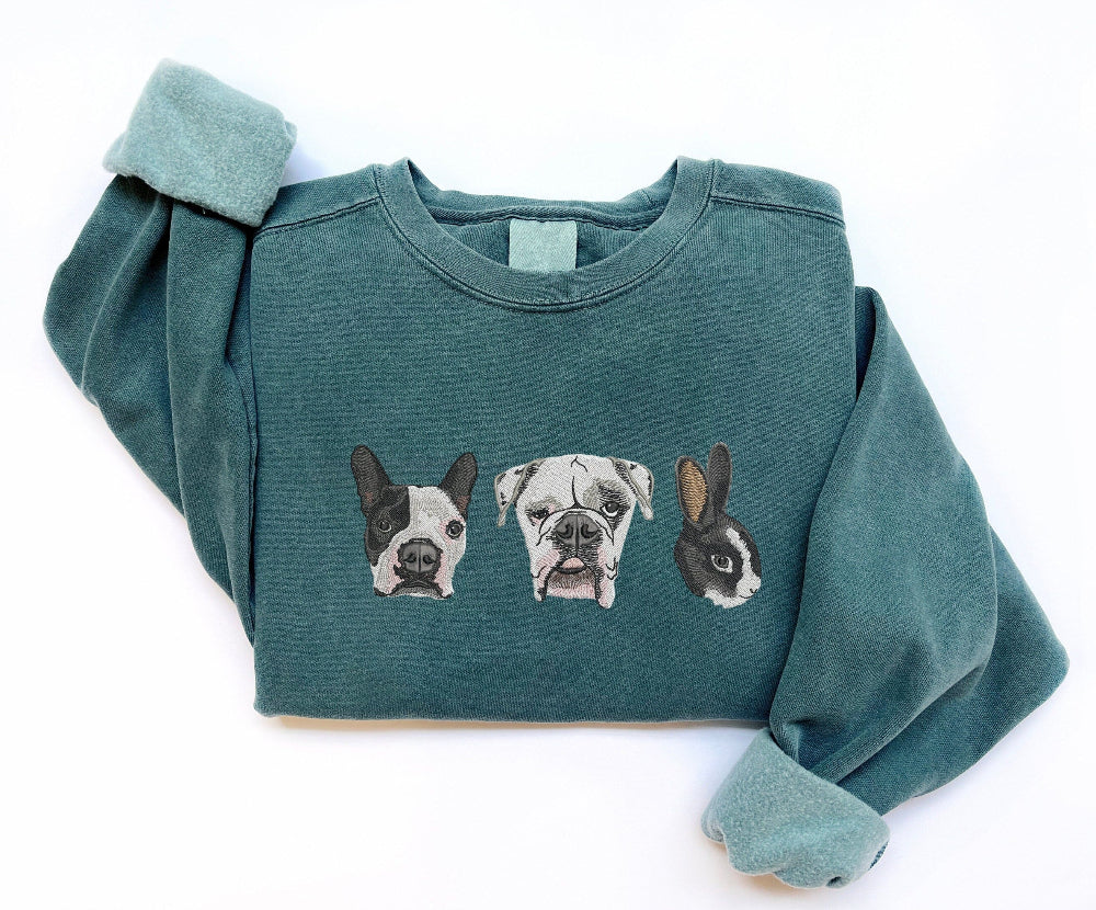 Custom Embroidered Dog Portrait Photo Sweatshirt | Gifts For Pet Lovers