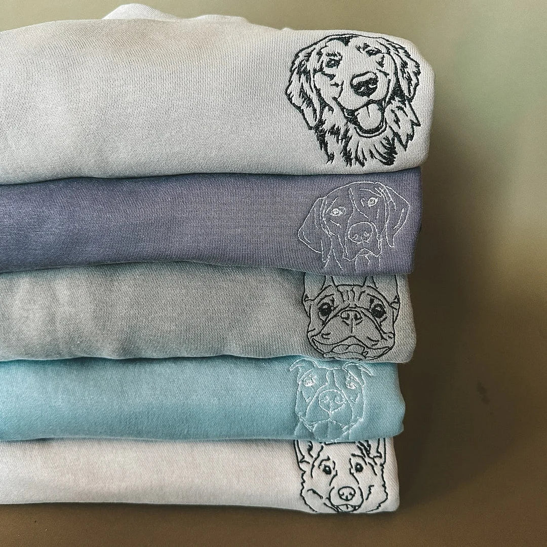 Embroidered Pet Face and Pet Name on Sleeve Sweatshirt for Pet Lovers