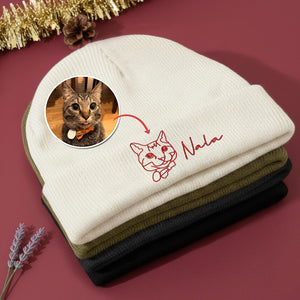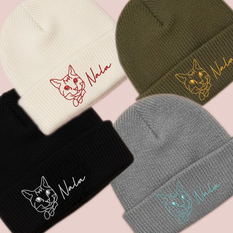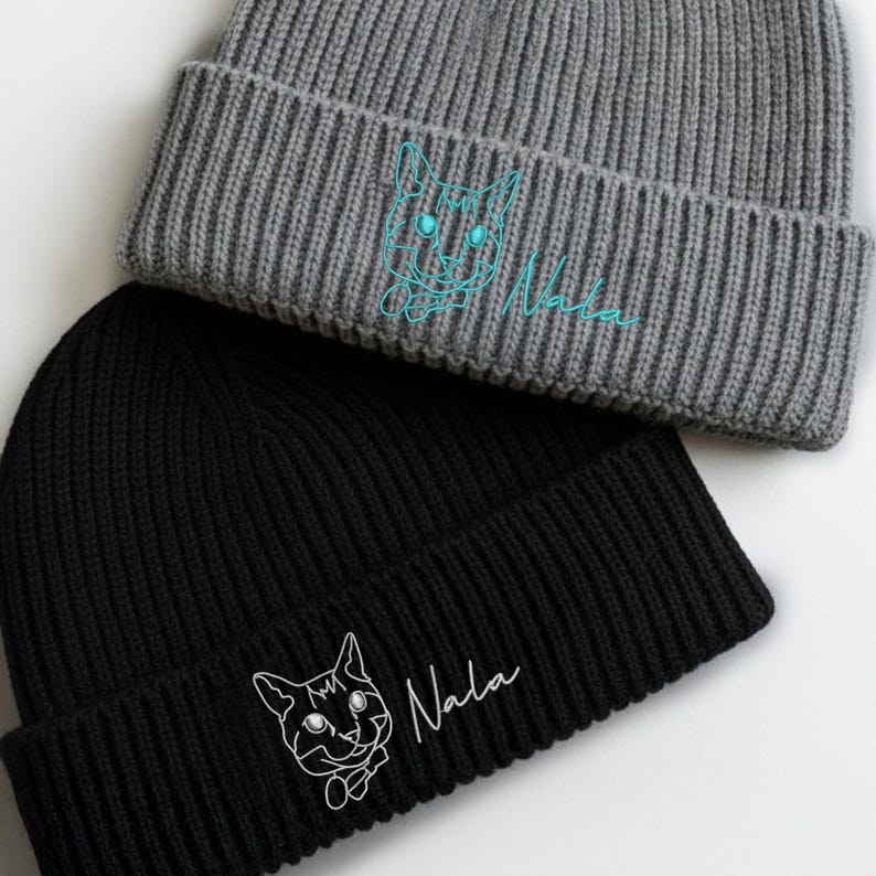 🎉Transform a cherished photo into a wearable keepsake with this custom embroidered cat beanie.🥰