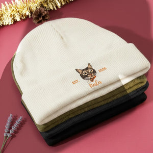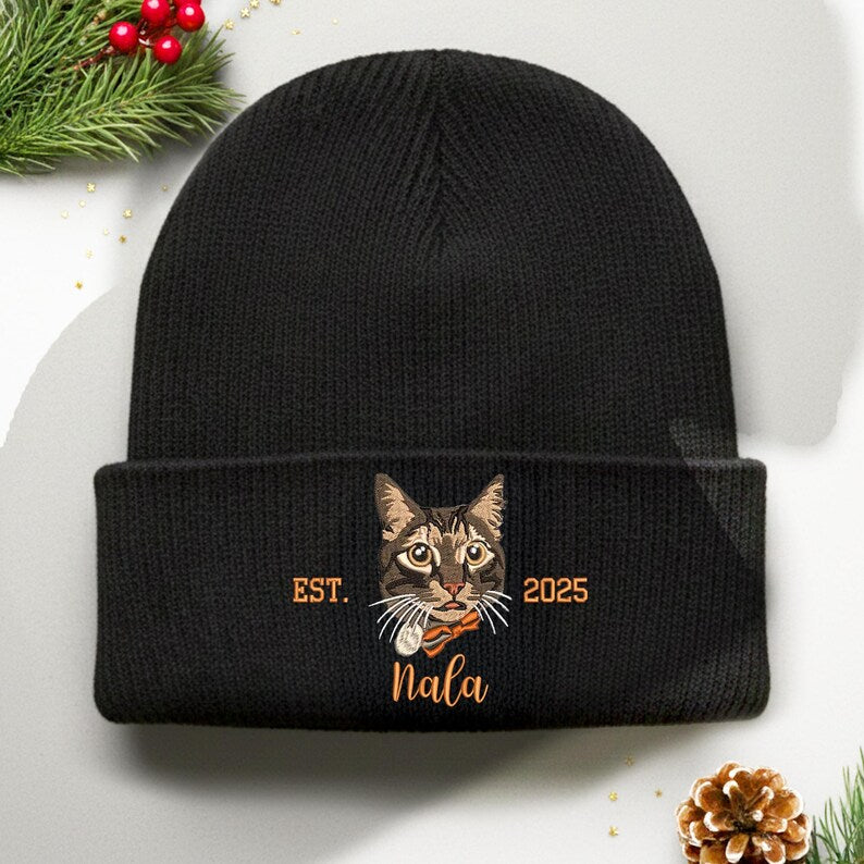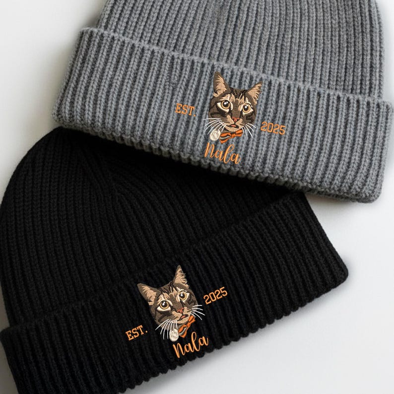 Custom Embroidered Cat Photo Beanie, Personalized Pet Portrait Winter Hat Gifts for Cat Mom, Unique Christmas Gifts for Pet Lovers