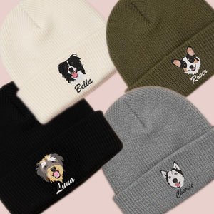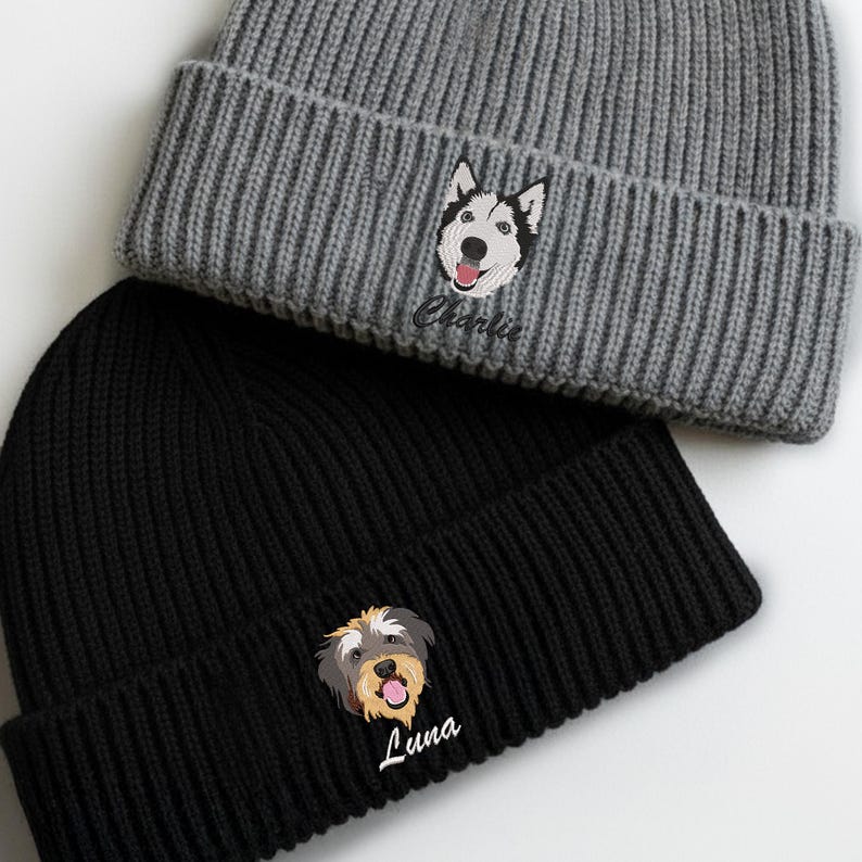🎉Stay cozy while honoring your furry friend with this custom embroidered dog photo beanie.🥰