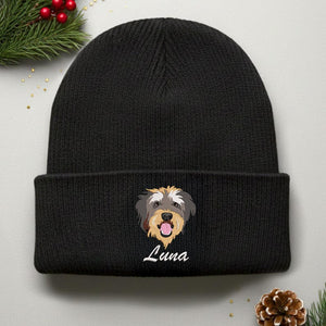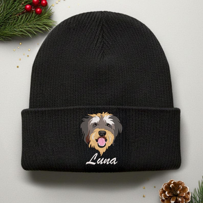 Custom Embroidered Dog Photo Beanie, Pet Photo Beanie Gifts for Dog Lovers, Personalized Christmas Gifts for Dog Mom