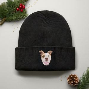 Custom Embroidered Dog Photo Beanie, Pet Portrait Beanie Gifts for Dog Mom, Personalized Christmas Gifts for Pet Lovers, Dog Lover Gift