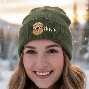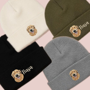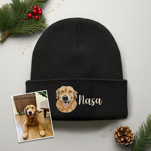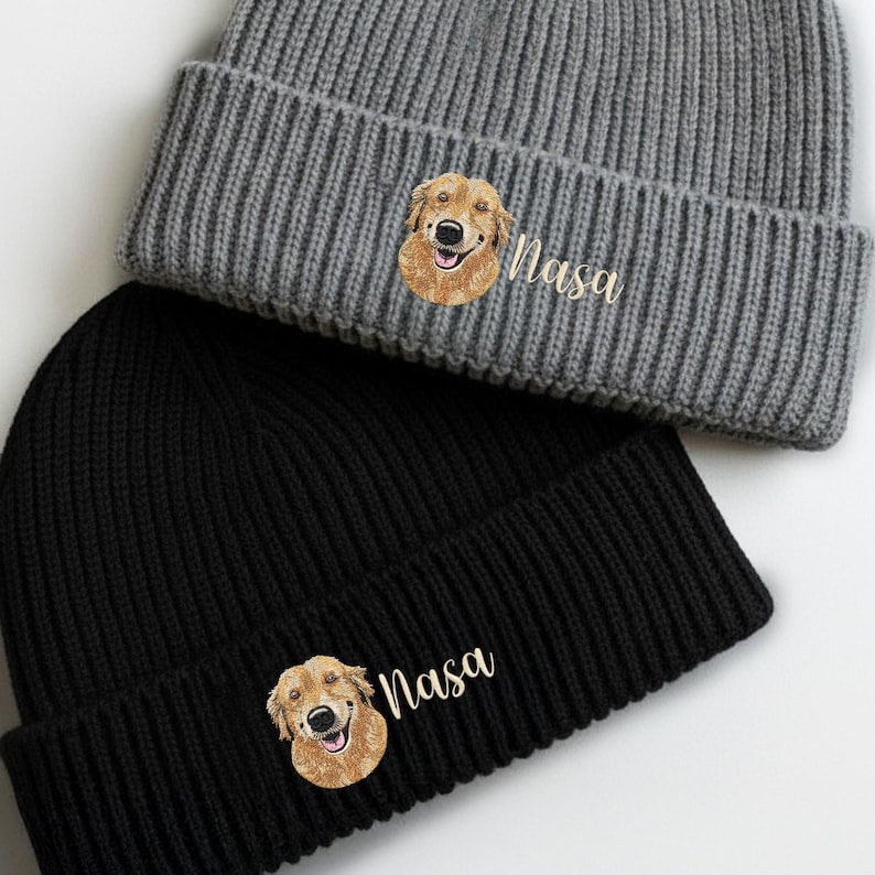 Custom Embroidered Dog Portrait Beanie, Pet Photo Beanie Gifts for Dog Mom, Personalized Christmas Gifts for Dog Owners, Dog Lover Gift