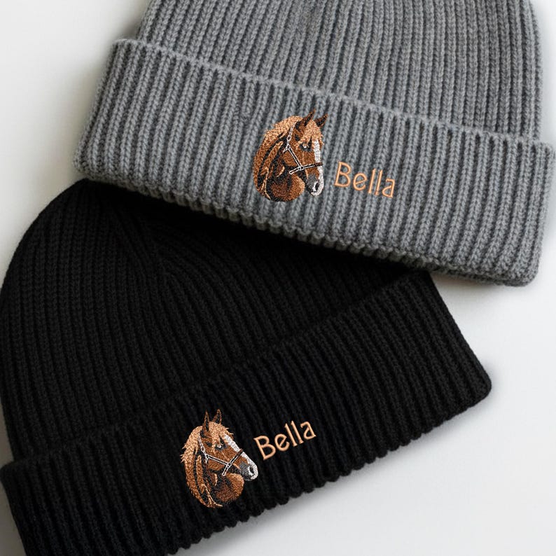 Custom Horse Photo Gift for Horse Lover, Personalized Embroidered Christmas Horse Portrait Beanie, Horse Mom Gift
