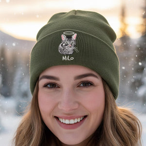 We understand how much your feline friend means to you, which is why we've created a way to keep them close. Each custom beanie features your cat's portrait delicately stitched into soft, cozy fabric—a wearable tribute to the joy they brought into your life. Whether you're a devoted cat mom or shopping for a fellow pet lover, this personalized beanie offers comfort and connection during every season. A heartfelt gift that honors the special bond you shared.