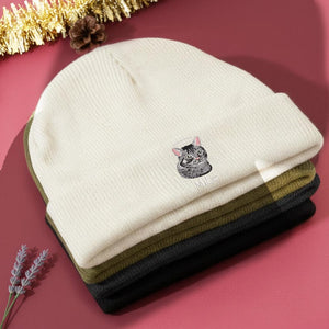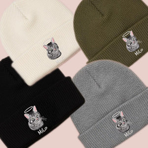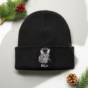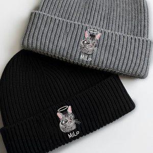 Embroidered Cat Photo Memorial Beanie, Custom Cat Portrait Beanie Gifts for Cat Mom, Christmas Gifts for Pet Lovers, Cat Lover Gift