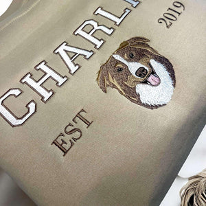 Custom Dog Hoodie Embroidered Dog Name, Varsity Personalized Pet Face Sweatshirt from Your Photo