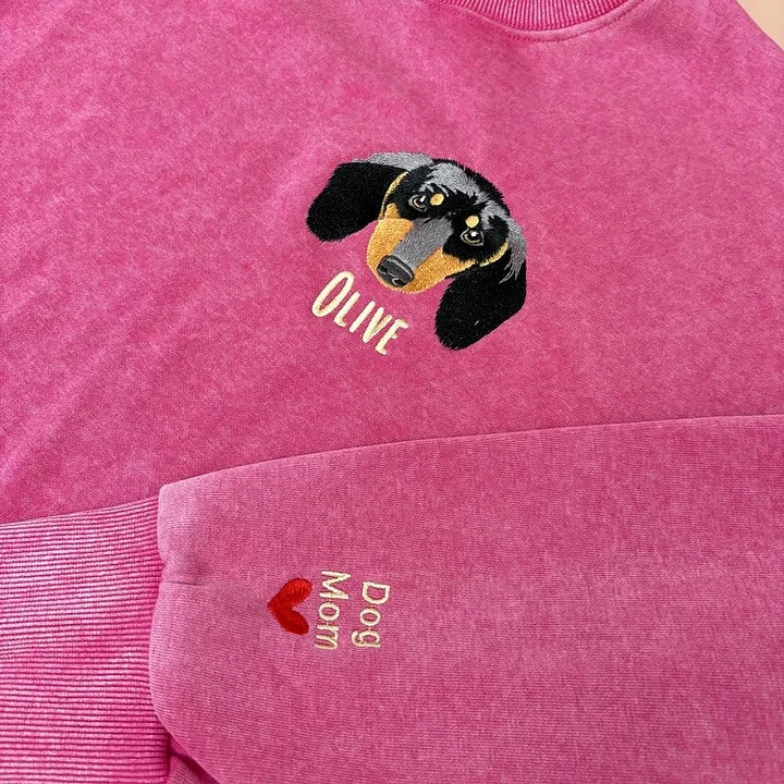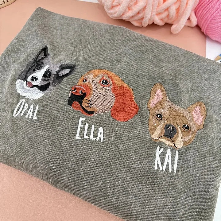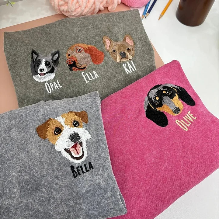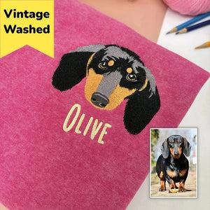 Custom Pet Portrait Exquisite Detail Embroidered Vintage Washed Sweatshirt T-Shirt Hoodie