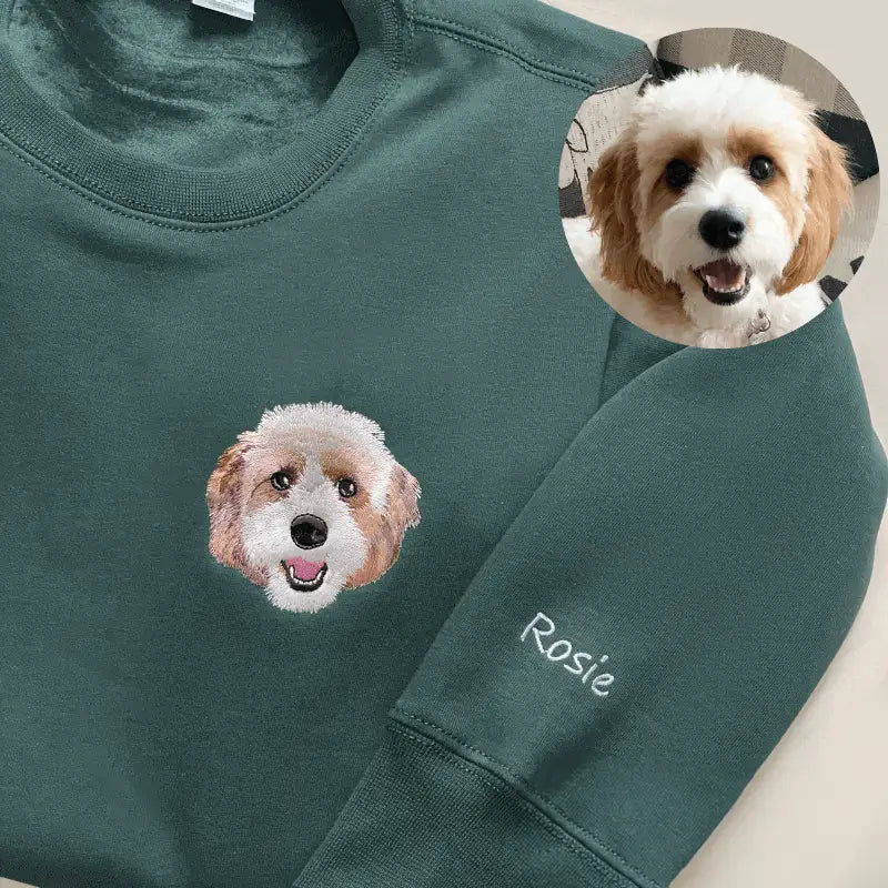 Custom Premium Handcrafted Pet Photo Embroidery T-shirt Sweatshirt Hoodie