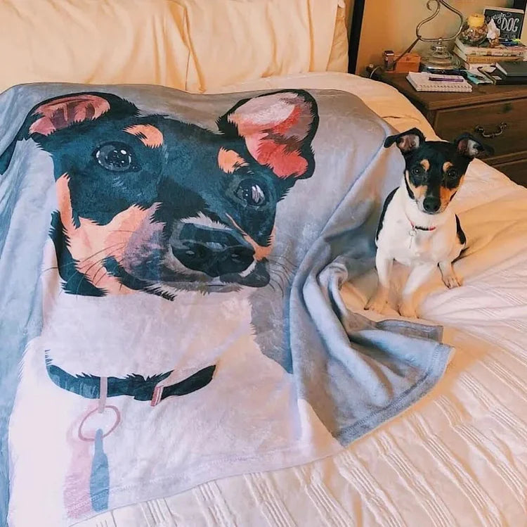 Personalized Pet Photo Blankets Painted Art Portrait Fleece Blanket